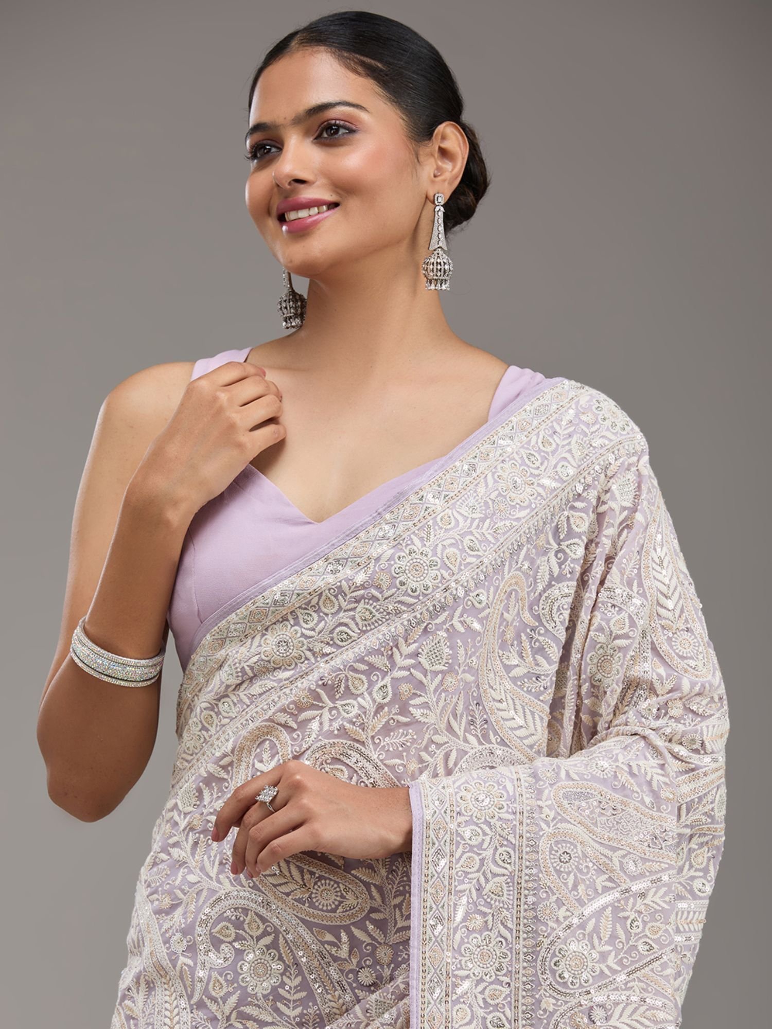 Lavender Thread Work Georgette Saree with Unstitched Blouse