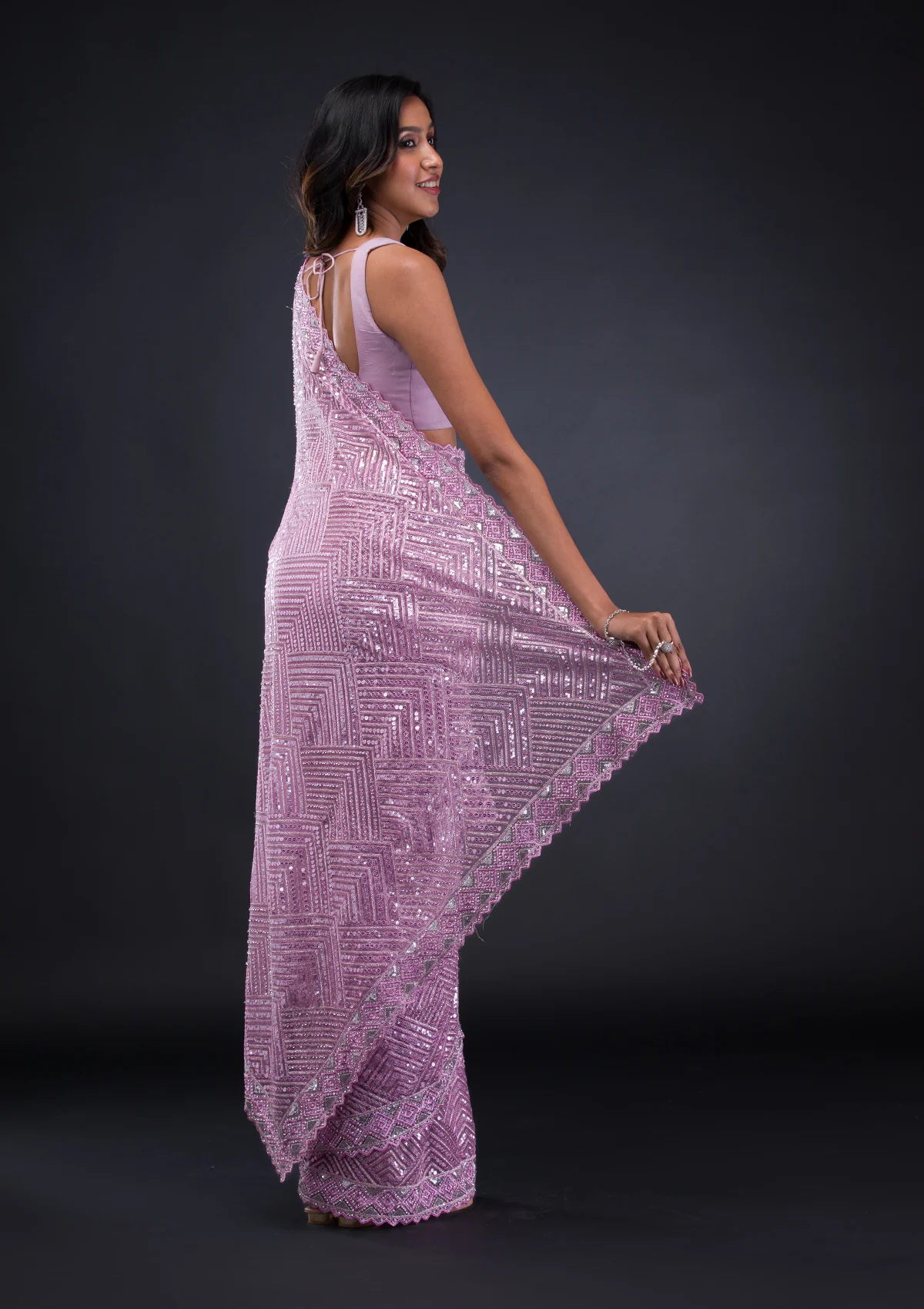 Lavender Threadwork Net Saree