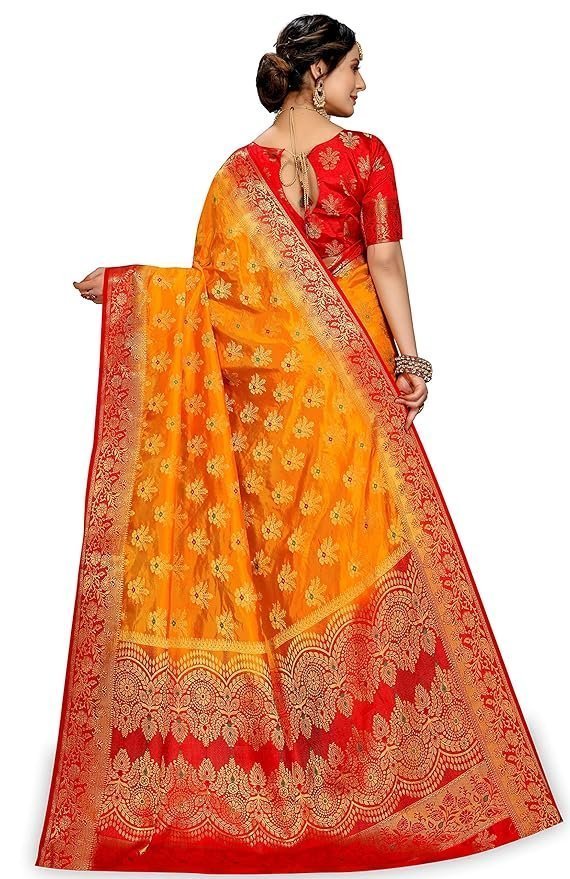 Women's Kanjivaram Woven Soft Silk Saree With Blouse Piece