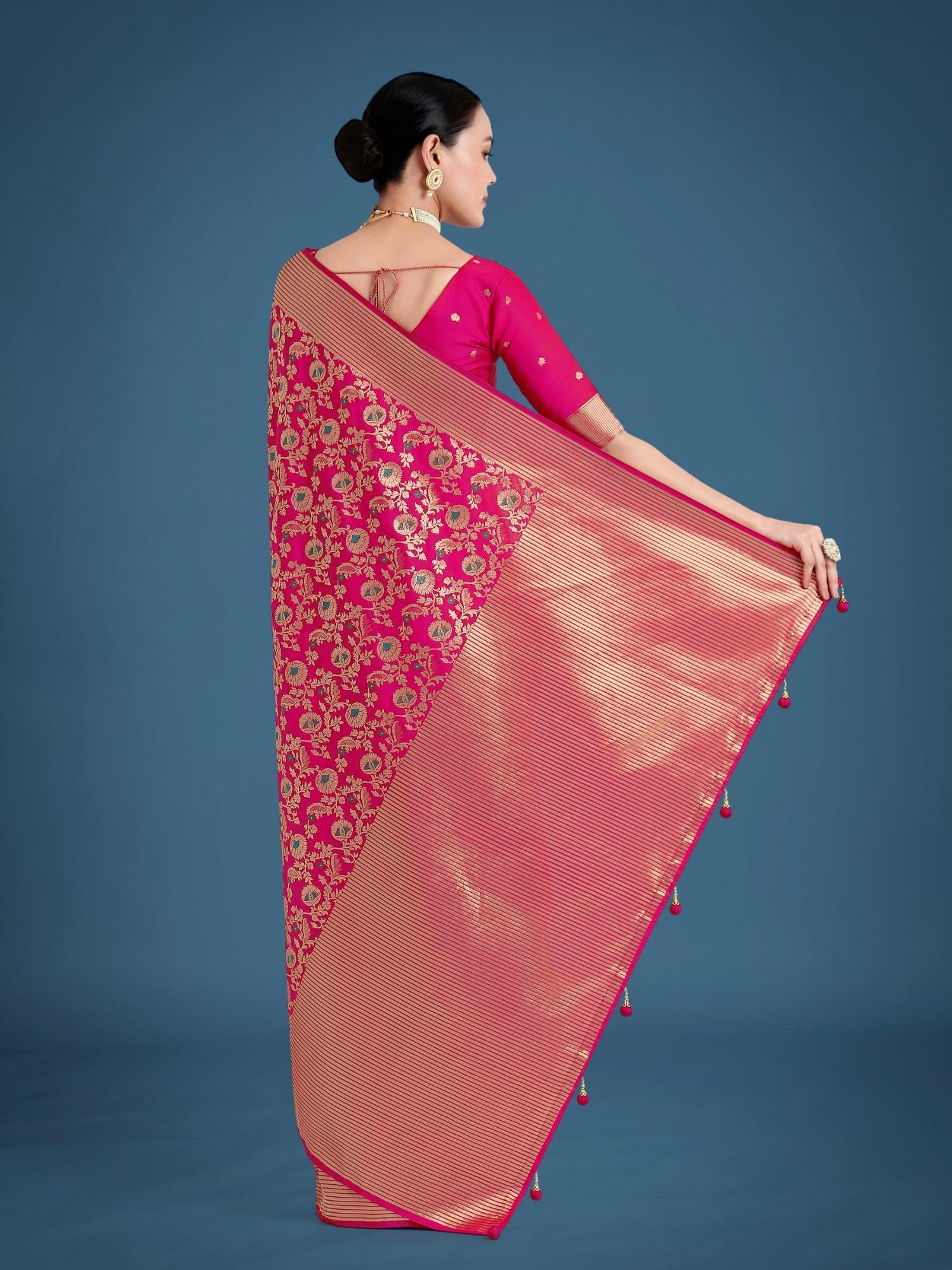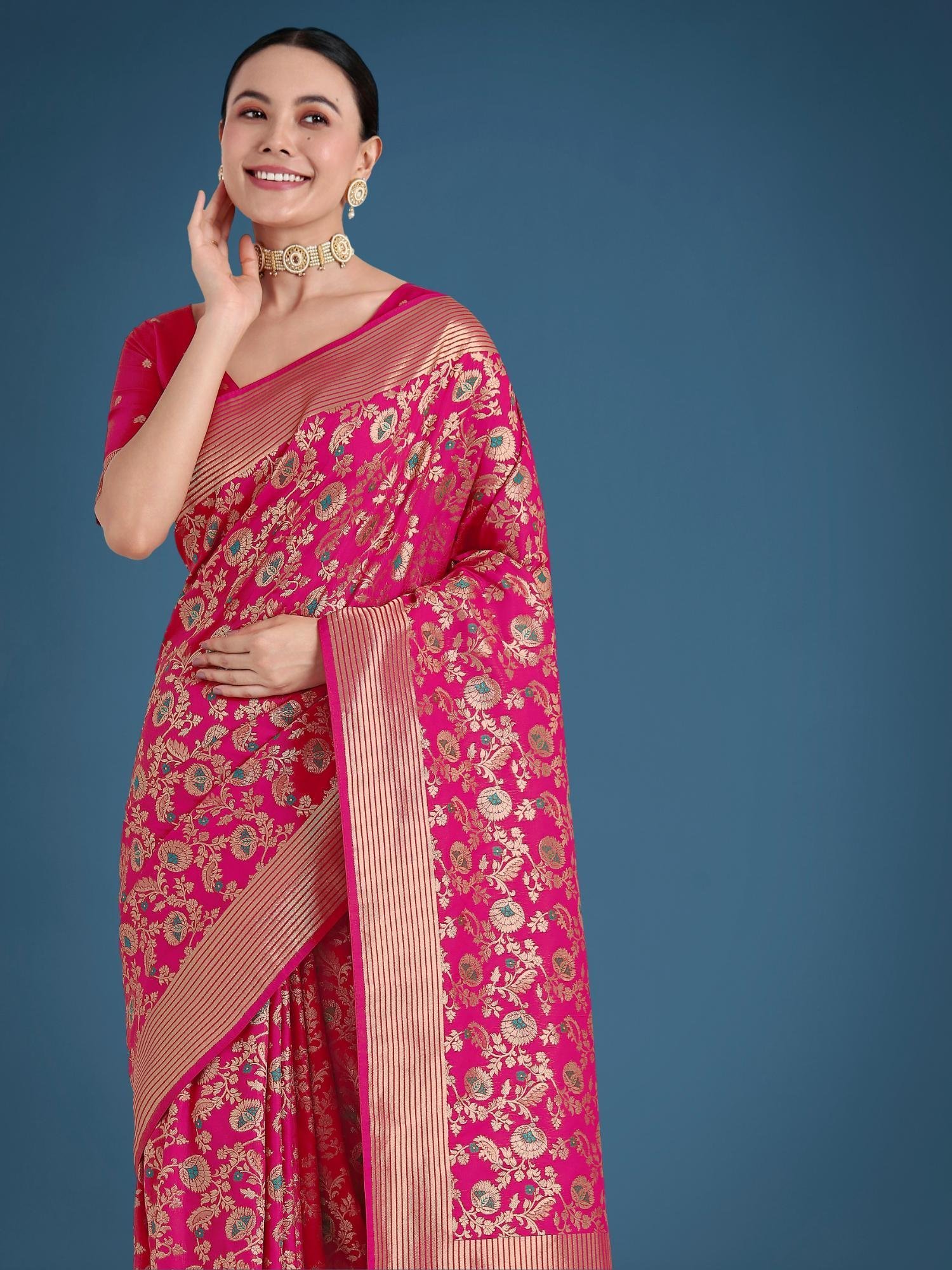 Silk Rani Pink Zaal Pattern Saree with Unstitched Blouse